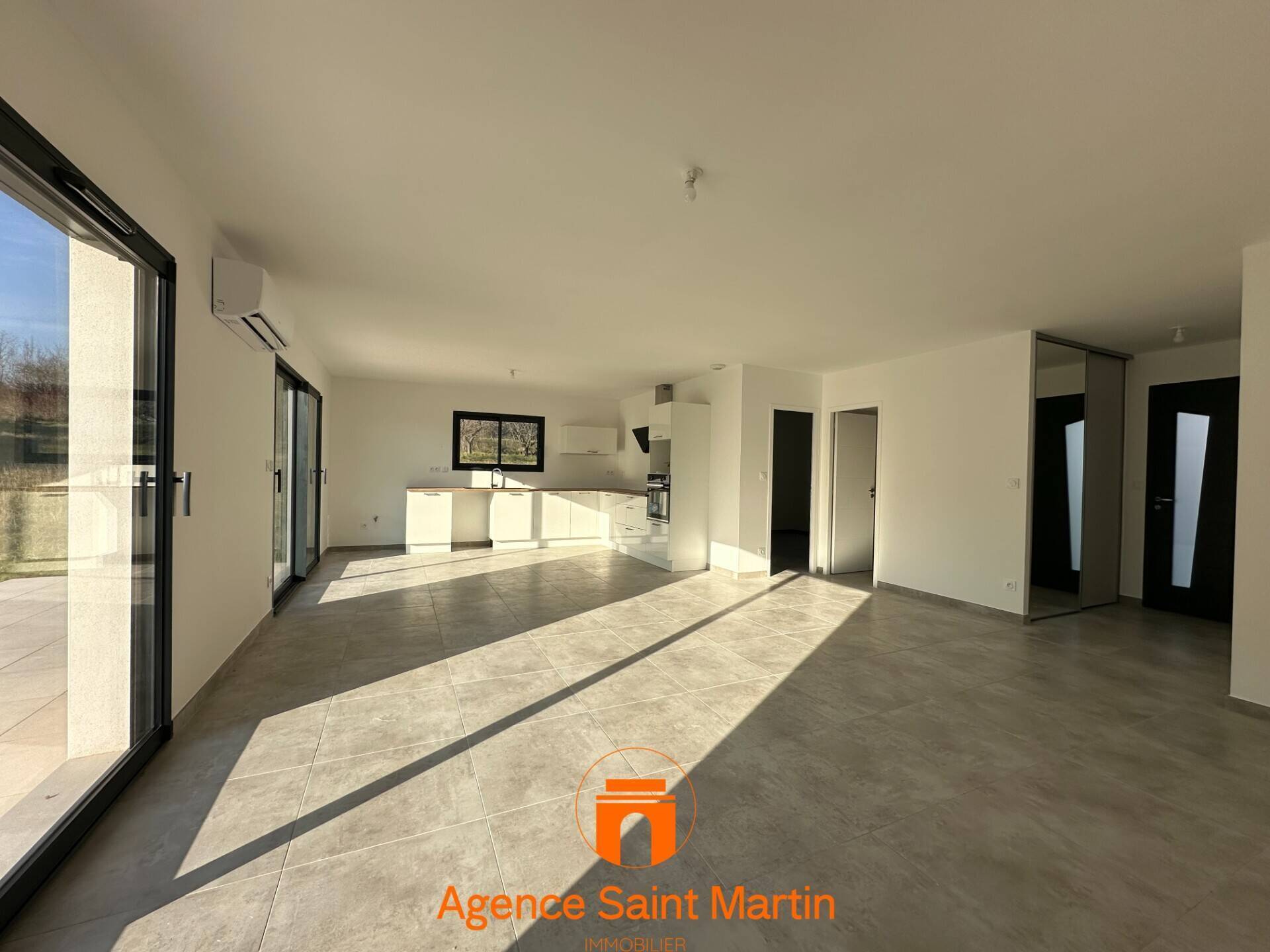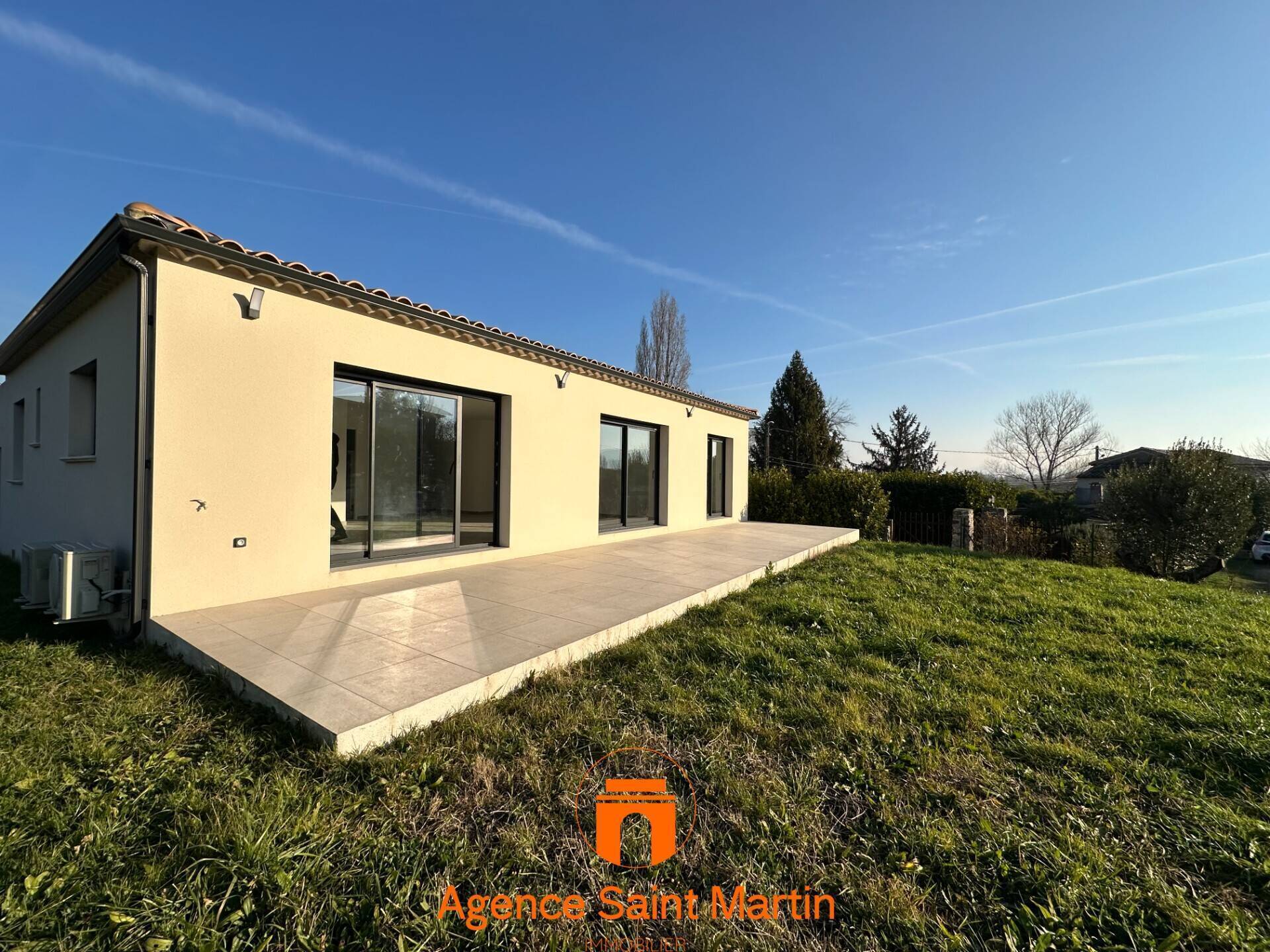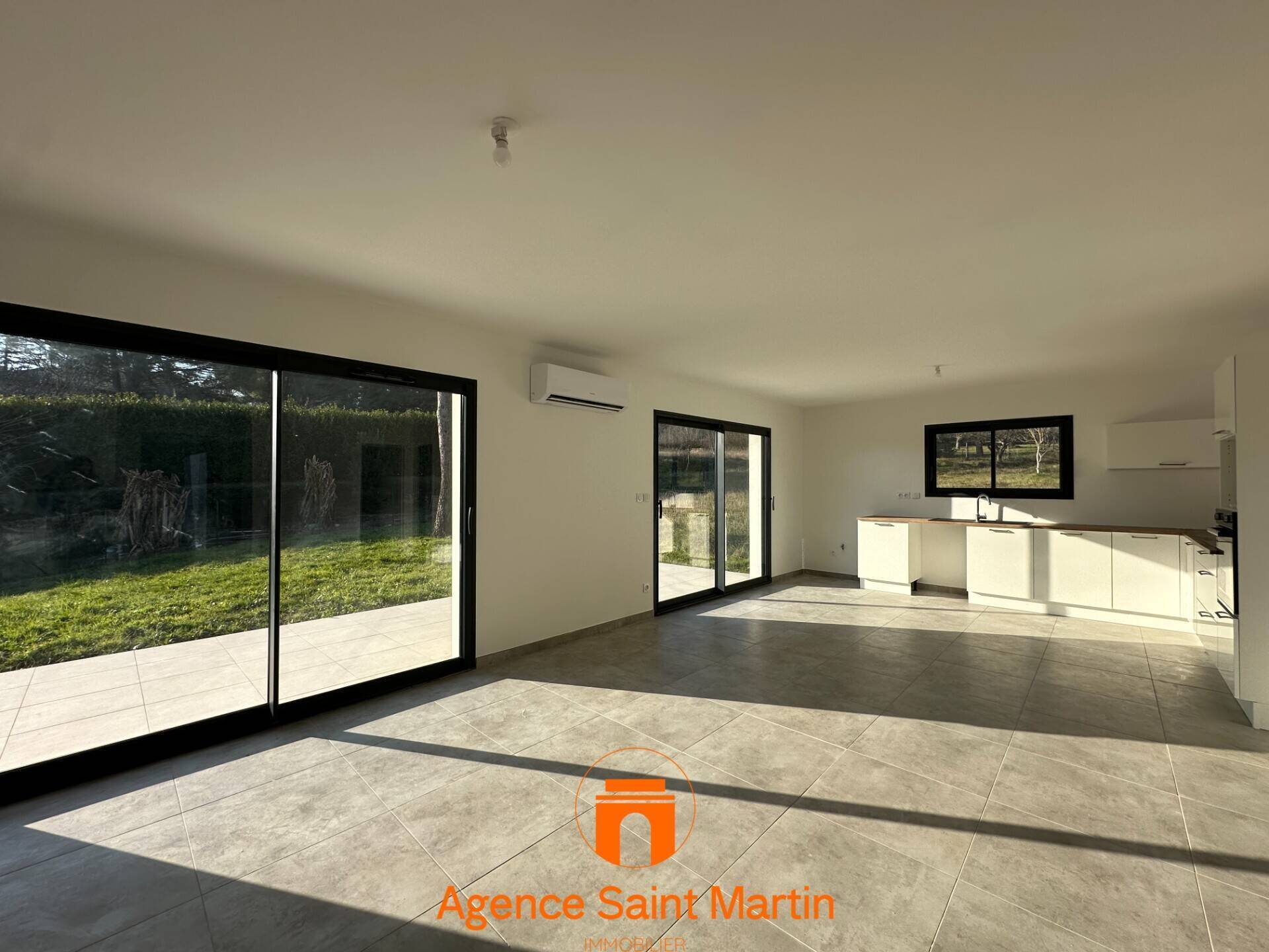 Dans un quartier calme sur les hauteurs de Viviers, Villa neuve de 2024 d'environ 99m². Elle comprend une belle pièce de vie de plus de 40m² avec un coin cuisine équipée ouverte sur la pièce, une grande buanderie permettant l'accès au garage de 20m², 3 chambres avec placards intégrés dont une suite parentale avec salle d'eau et wc, une salle de bains supplémentaires avec douche et un wc. Climatisation réversible dans le séjour et radiateurs électriques dans les chambres en compléments. Terrain piscinable de 586m²