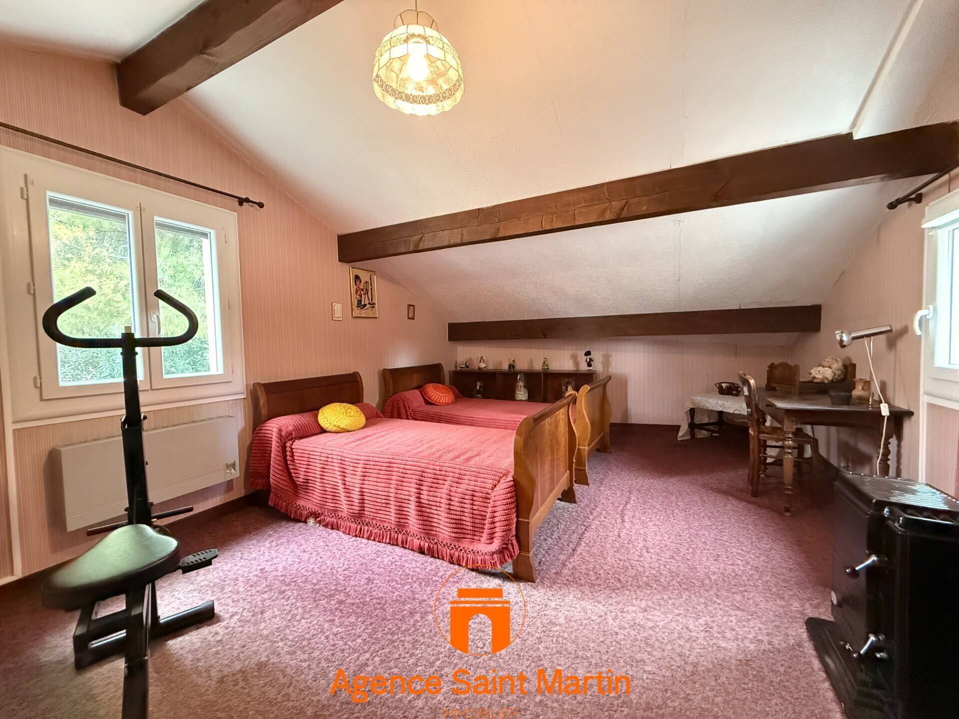 Proche commerces, Dans un quartier résidentiel, Maison d’environ 127m2 comprenant de plain pied, une entrée qui dessert un grand séjour avec cheminée ouvert sur un coin salle à manger donnant sur l'extérieur, une cuisine séparée, 3 chambres, un petit bureau ou cellier d'environ 5,6m², une salle de bains et wc. À l’étage, une grande chambre. Terrain de 410m2 avec terrasses et un garage de 19m². Prévoir travaux.